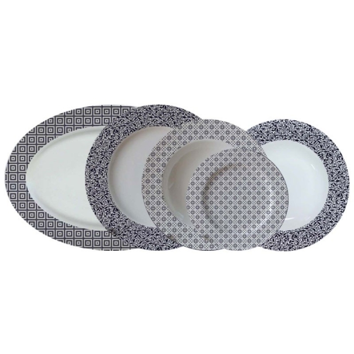 Πιάτα πορσελάνης σετ 20 τεμαχίων λευκό/μπλε AB 538