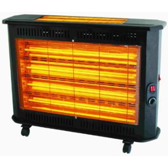 Ισχύς: 2400W 2 βαθμίδες θέρμανσης 1200W-2400W Ρυθμιζόμενος θερμοστάτης για διατήρηση της επιθυμητής θερμοκρασίας 4 λάμπες χαλαζία υψηλής ποιότητας Μεγάλη εμβέλεια και άμεση απόδοση θερμότητας στο χώρο Προστασία από την υπερθέρμανση Προστασία από ανατροπή Με ροδάκια για εύκολη μεταφορά..