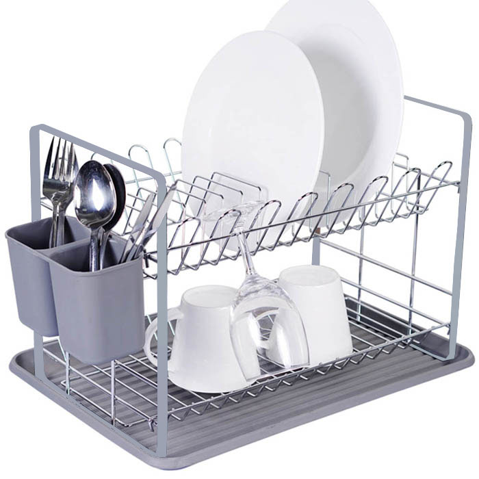 Πιατοθήκη 2όροφη μεταλλική γκρι 48εκ Ankor 808724