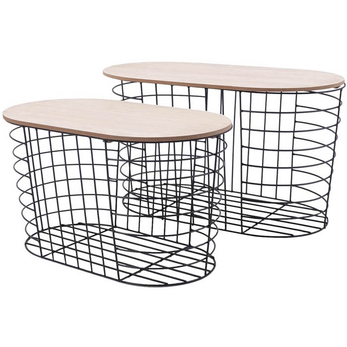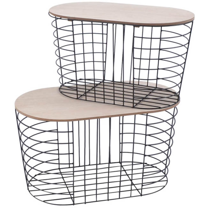 Τραπέζια βοηθητικά σετ 2 τεμαχίων μεταλλικό μαύρο/natural mdf Ankor 801336
