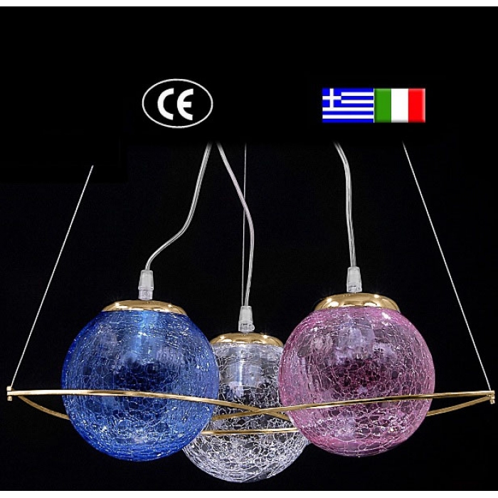 Φωτιστικό οροφής 3φωτο οξυντέ με κρακελέ μπάλες