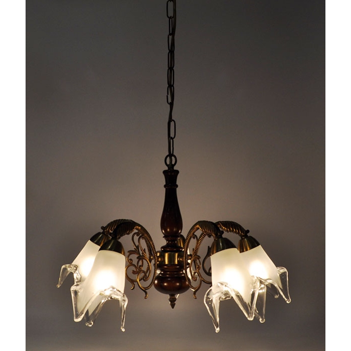 Φωτιστικό οροφής 5φωτο μεταλλικό-ξύλινο οξυντέ-καφέ 52x95εκ Sinialo SIN-024