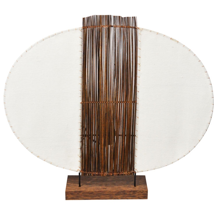 Λάμπα επιτραπέζια ξύλινη-υφασμάτινη καφέ-εκρού 50.5x11x44εκ Pol 118/34