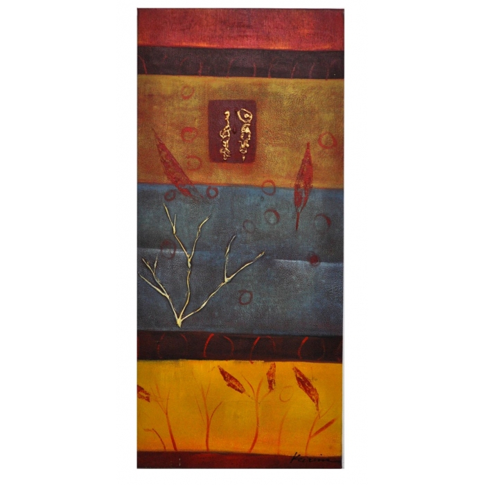 Πίνακας σε καμβά Pol Με σχέδια φύλλων σε κίτρινο/γκρι/κόκκινο χρώμα Σε ξύλινο τελάρο Με χειροποίητο φινίρισμα Διαστάσεις: 45x100εκ. ..