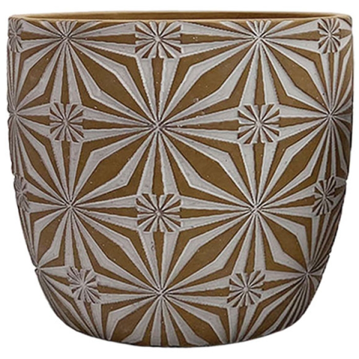 Πυθάρι τσιμεντένιο Estheti Σε καφέ/λευκό χρώμα Με σχέδιο λουλουδιών Διαστάσεις: 20x28.5εκ. ..