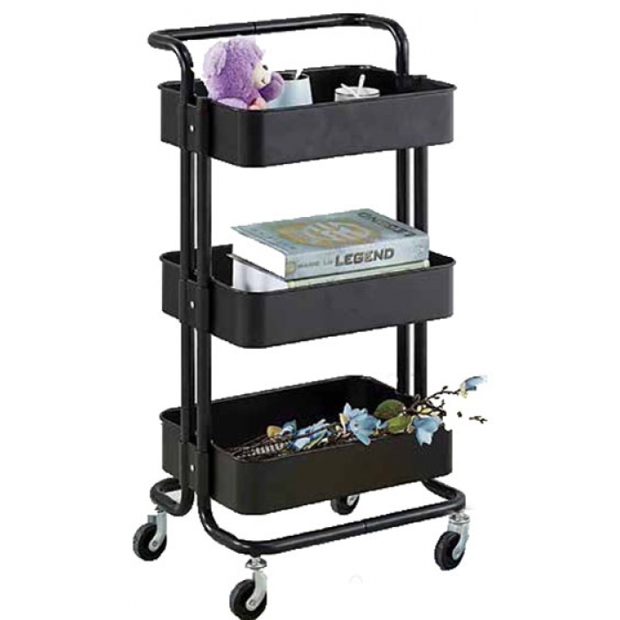 Μανάβης τρόλλεϋ μεταλλικός 3 θέσεων μαύρος 43x36x87εκ Newest 001