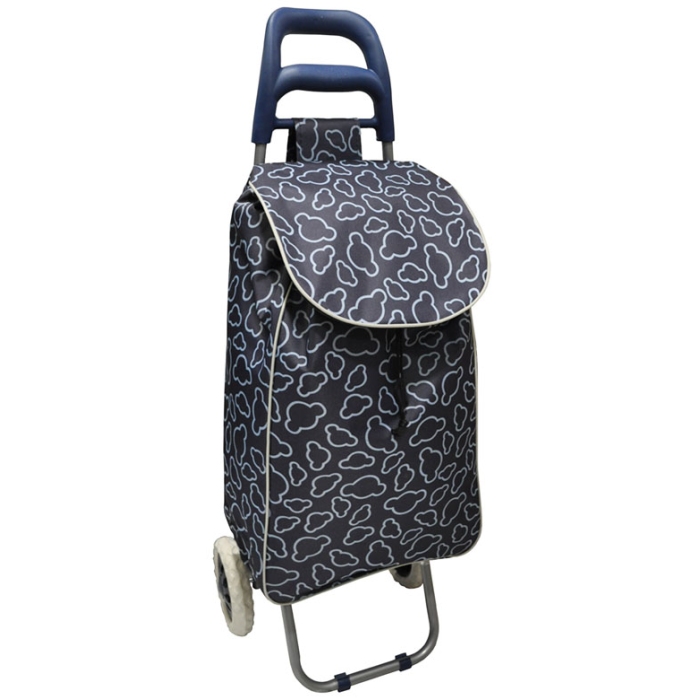 Καροτσάκι λαϊκής μεταλλικό Σε μπλε/πράσινο χρώμα Με σχέδιο λουλουδιών Με εργονομική λαβή και τσεπάκι με φερμουάρ στο πίσω μέρος. Με αδιάβροχο σάκο από πολυεστέρα ο οποίος κλείνει με κορδόνι Διάσταση τσάντας: 33x20x57εκ. Διαστάσεις: 34x31x95εκ. ..