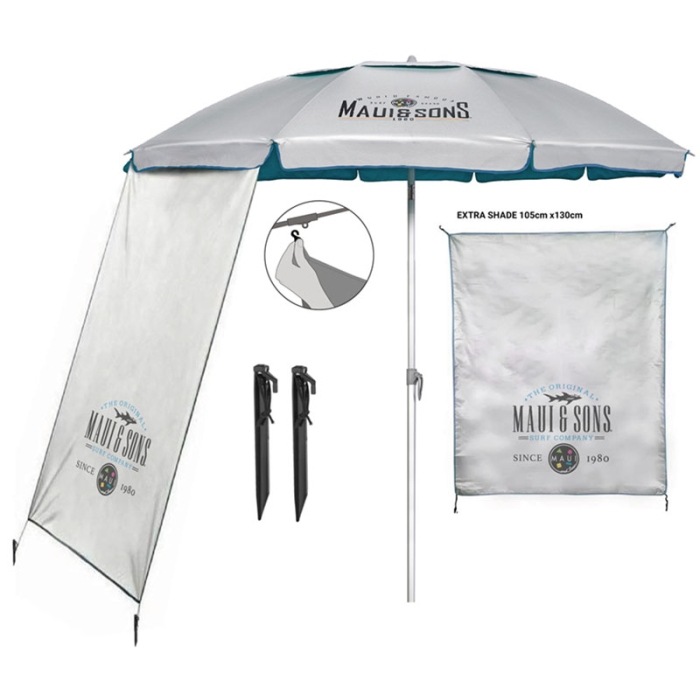 Ομπρέλα θαλάσσης αντιανεμική Maui Σε τιρκουάζ χρώμα Διάμετρος: 1.90m Upf 50+ (μπλοκάρει το 98% των επιβλαβών ακτίνων UV) 8 ακτίνες fiberglass 95εκ. με διάμετρο 5.00mm Ύφασμα: 100% Πολυεστερικό pongee 190T με επίστρωση silver coating Σκελετός αλουμινίου Άξονες 29/32mm Με αεραγωγό Με σπάσιμο (με μηχανισμό κλίσης) Με 4 ειδικές υποδοχές για σχοινάκια στερέωσης στο έδαφος Σε υφασμάτινη θήκη μεταφοράς 6211003..