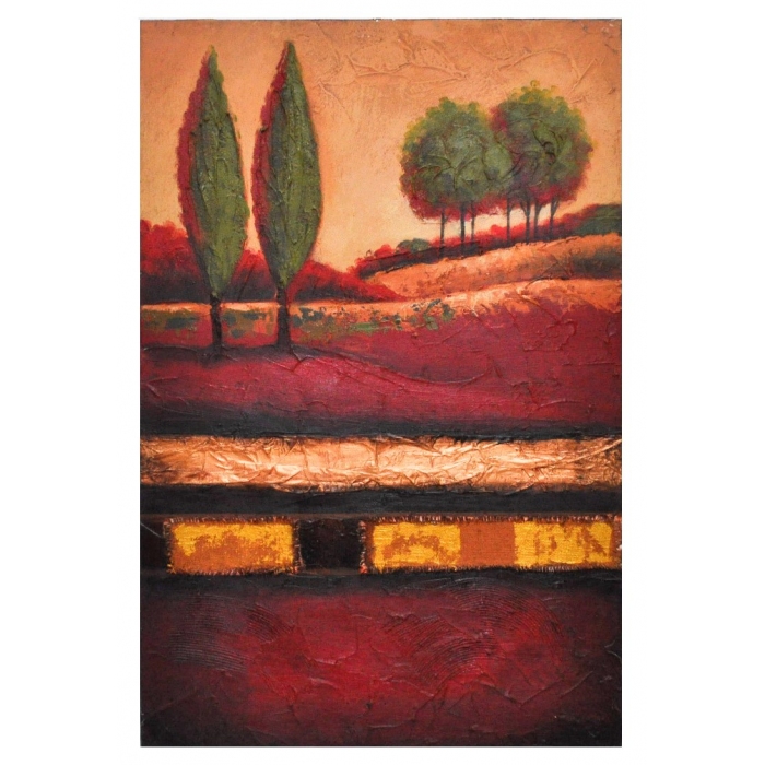 Πίνακας σε καμβά Δέντρα κόκκινο/πράσινο/μπεζ 60x90εκ 130/501