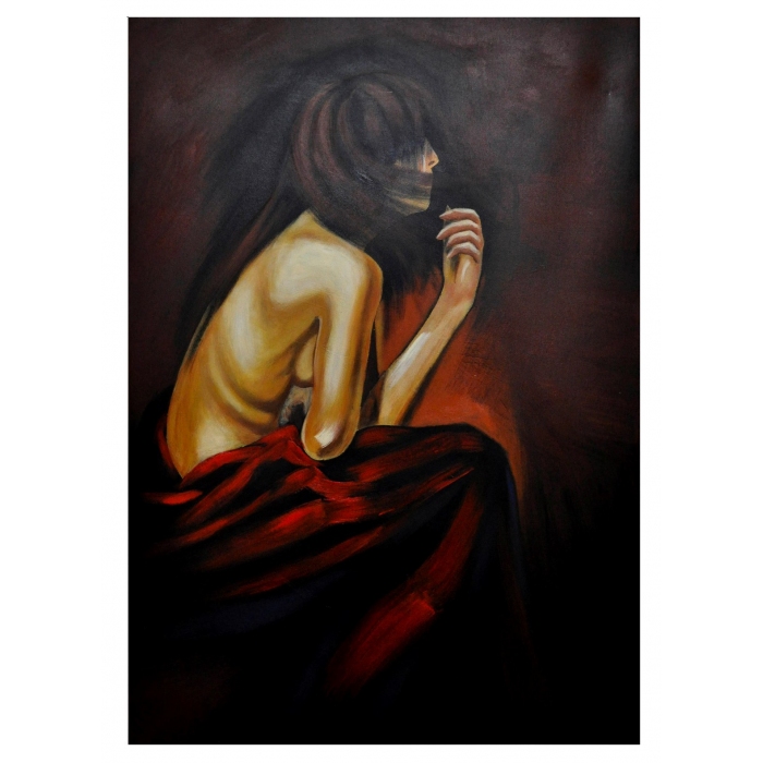 Πίνακας σε καμβά Γυναίκα καφέ/κόκκινο 70x100εκ 35-98-YR39