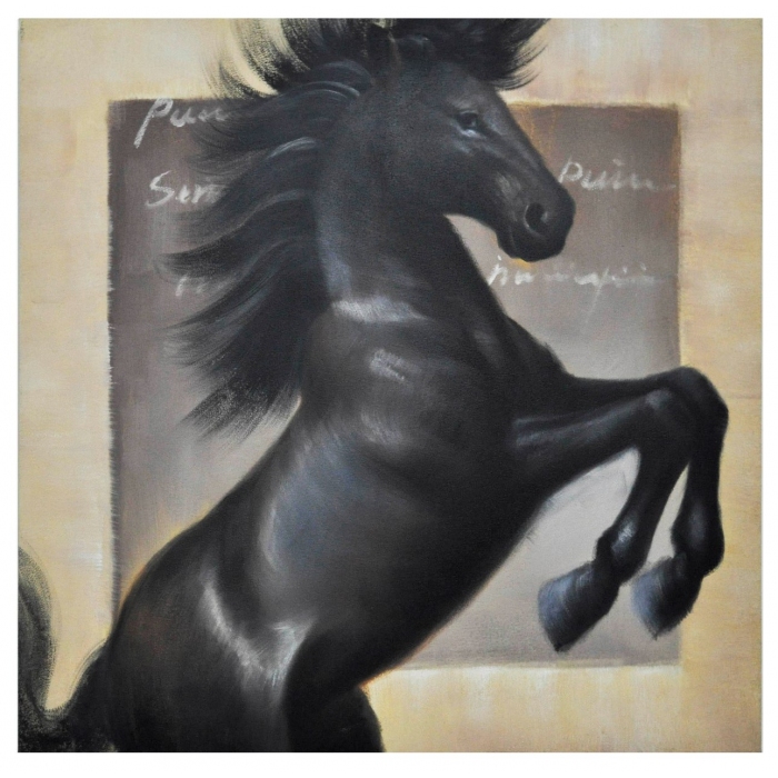 Πίνακας σε καμβά Άλογο μαύρο/εκρού 100x100εκ 75999