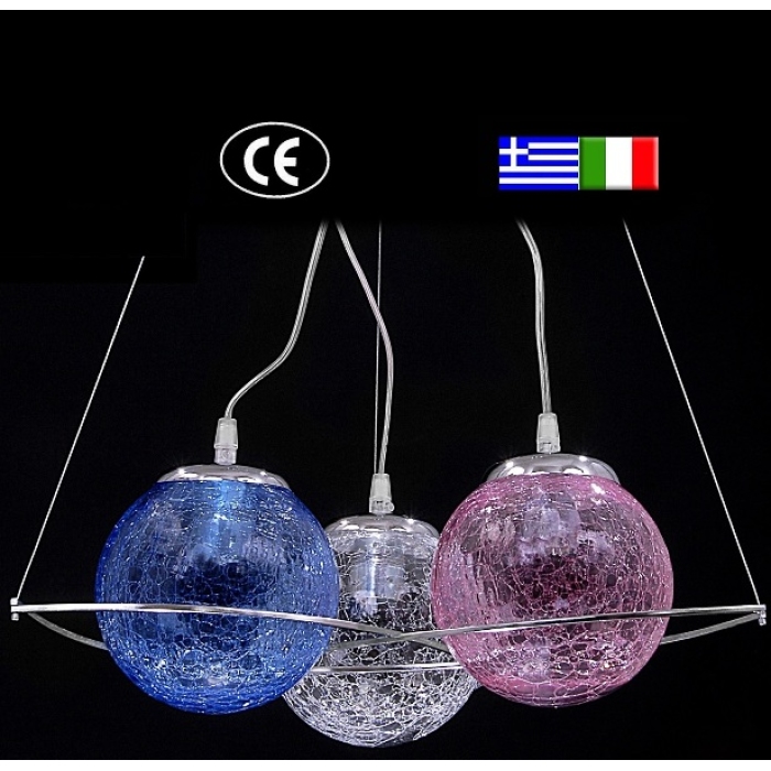 Φωτιστικό οροφής 3φωτο νίκελ με κρακελέ μπάλες