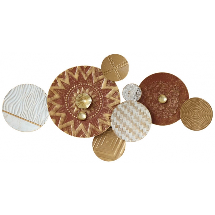 Διακοσμητικό τοίχου μεταλλικό Inart Σε αντικέ χρυσό χρώμα Σχέδιο με κύκλους Διαστάσεις: 85x2εκ. ..