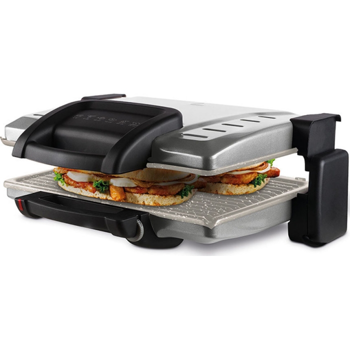 Ισχύς: 2100W Για 4 τοστ XL αντικολλητικές πλάκες γρανίτη grill Μέγεθος επιφάνειας ψησίματος: 34x24εκ. Αποσπώμενες πλάκες, κατάλληλες για πλυντήριο πιάτων 3 θέσεις ψησίματος: Κλείσιμο, 90° και 180° 180? άνοιγμα πλακών - μεγάλη ενιαία επιφάνεια Ρυθμιζόμενο ύψος για σάντουιτς και ψητά κάθε μεγέθους Σύστημα προσαρμογής ύψους της άνω πλάκας στο επιθυμητό ύψος Λυχνίες λειτουργίας και επίτευξης θερμοκρασίας Αντιθερμική λαβή ..