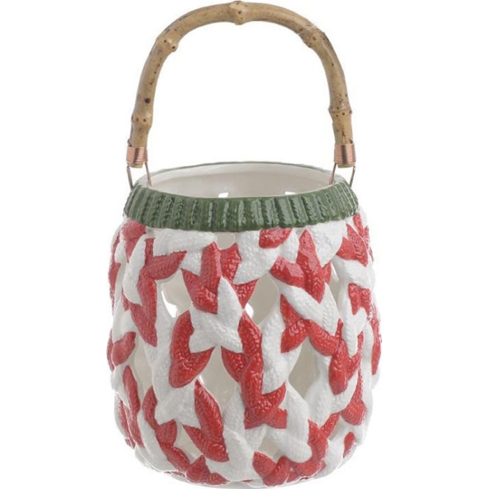 Φανάρι κεραμικό κόκκινο-λευκό 25.5εκ Inart 2-70-212-0001