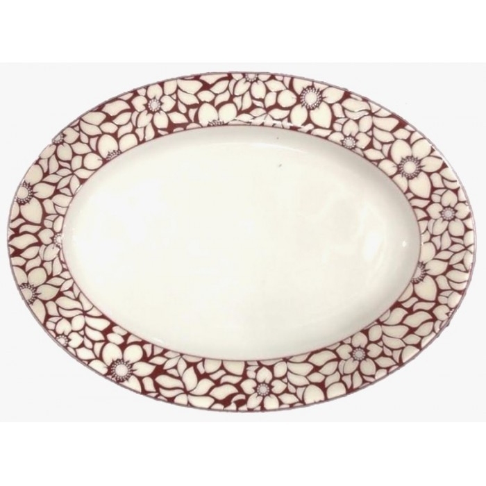 Πιατέλα οβάλ πορσελάνης AB Σε κόκκινο/εκρού χρώμα Με σχέδιο λουλουδιών Διαστάσεις: 37x26x2.5εκ. ..