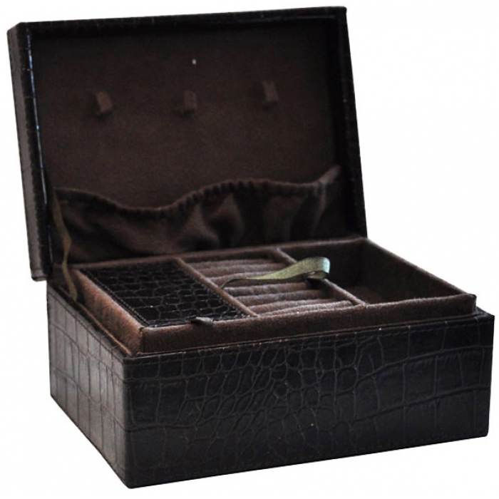 Μπιζουτιέρα δερματίνη Κροκό καφέ 17.7x12.5x8.5εκ Sinialo 37-48-1025182DB