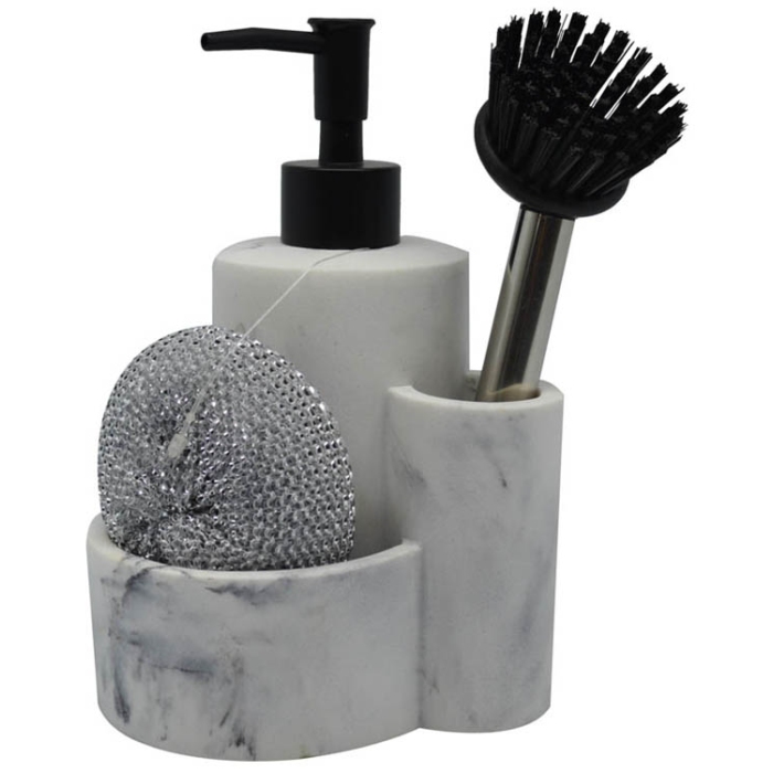 Dispenser με θήκη για σφουγγάρι Ankor σε σχέδιο πέτρας με γκρι χρώμα και γράμματα σε ασημί χρώμα Υλικό: polyester Διαστάσεις: 15x6x14.5εκ. Συμπεριλαμβάνεται το σφουγγάρι. ..