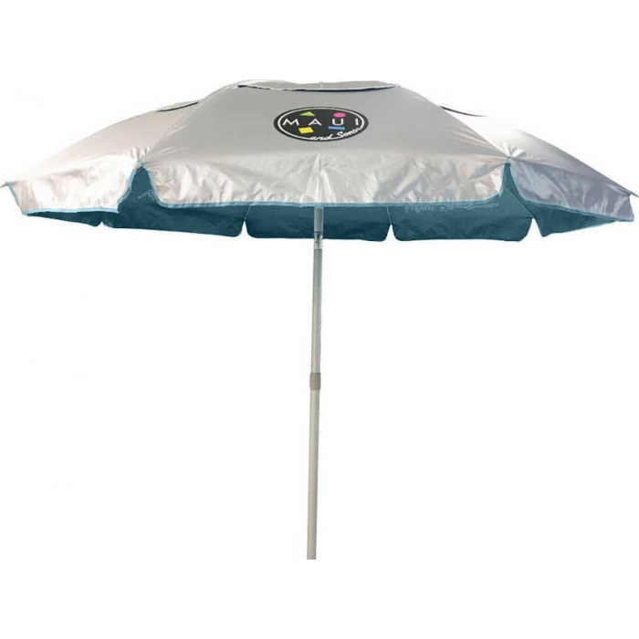 Ομπρέλα θαλάσσης αντιανεμική Maui Σε τιρκουάζ χρώμα Διάμετρος: 1.90m Upf 50+ (μπλοκάρει το 98% των επιβλαβών ακτίνων UV) 8 ακτίνες fiberglass 95εκ. με διάμετρο 5.00mm Ύφασμα: 100% Πολυεστερικό pongee 190T με επίστρωση silver coating Σκελετός αλουμινίου Άξονες 29/32mm Με αεραγωγό Με σπάσιμο (με μηχανισμό κλίσης) Με 4 ειδικές υποδοχές για σχοινάκια στερέωσης στο έδαφος Σε υφασμάτινη θήκη μεταφοράς 6211003..