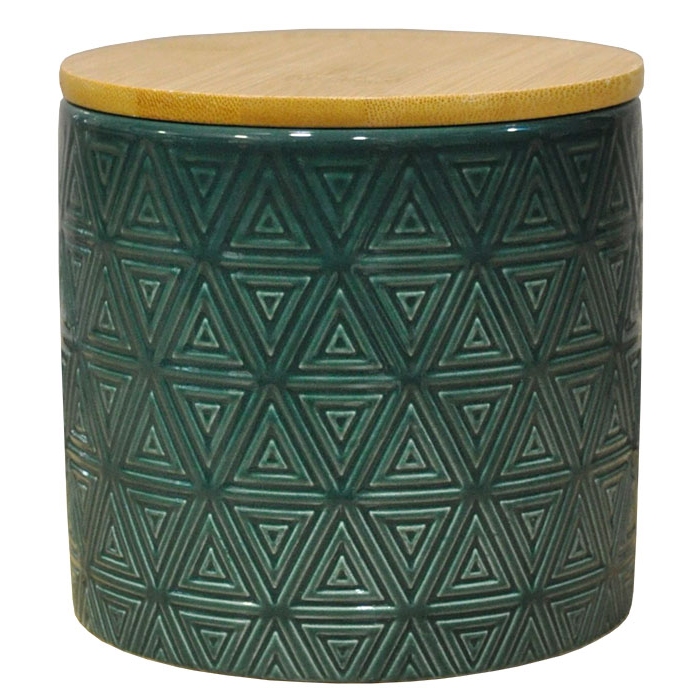 Βάζο αποθήκευσης κεραμικό Sidirela Σε βεραμάν χρώμα Με ξύλινο καπάκι που κλείνει αεροστεγώς Ιδανικό για καφέ, ζάχαρη κ.α. Διαστάσεις: 11x16εκ. ..