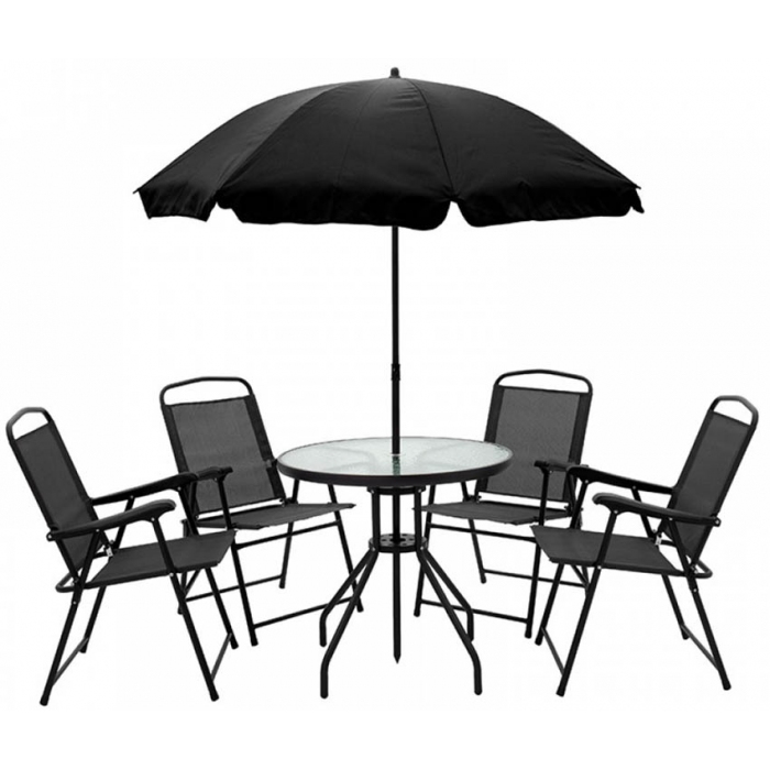Τραπεζαρία κήπου με ομπρέλα σετ 6 τεμαχίων μεταλλικό-textline μαύρο Click 6-50-676-0087
