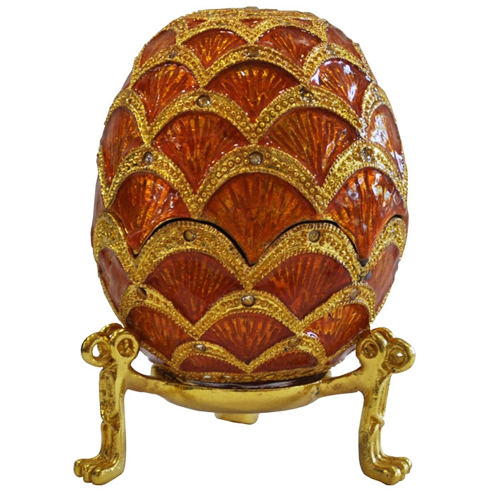 Αυγό διακοσμητικό Faberge με στρας και σμάλτο πορτοκαλί-χρυσό 8x12εκ Sinialo 5164007