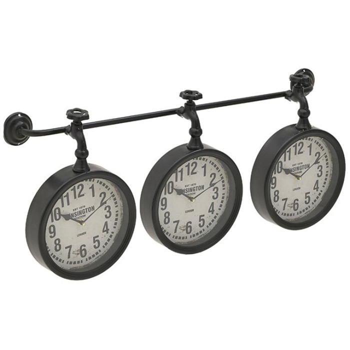 Ρολόι τοίχου τριπλό μεταλλικό μαύρο 83.5x13x35εκ Inart 3-20-463-0046