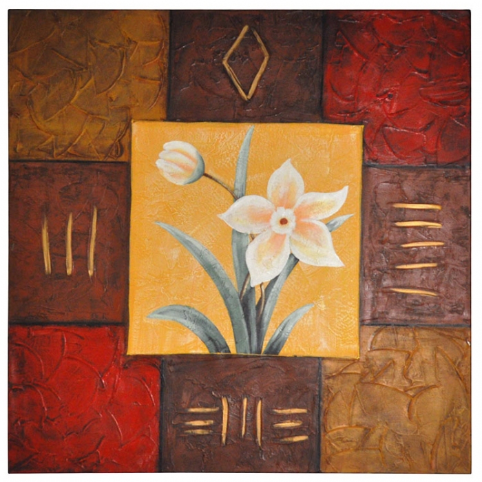 Πίνακας σε καμβά Λουλούδια καφέ-μπεζ 80x80εκ Sinialo 35-98-ΥΗ135