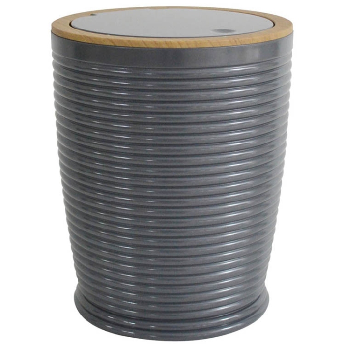 Κάδος μπάνιου πλαστικός Ankor Σε γκρι χρώμα Με ανάγλυφες ρίγες και εφέ ξύλου στο καπάκι. Χωρητικότητα: 5Lt Διαστάσεις: 19x19x23.5εκ. Εκτός από το μπάνιο μπορεί να χρησιμοποιηθεί οπουδήποτε, όπως στο γραφείο ή το υπνοδωμάτιο. Διαθέτει εύχρηστο καπάκι και άνοιγμα με ένα άγγιγμα. ..