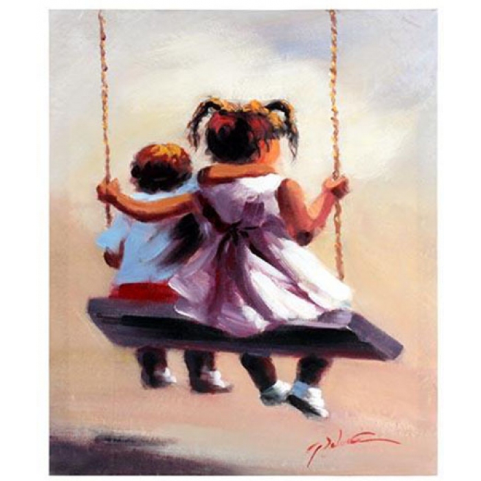 Πίνακας σε καμβά Παιδιά μπεζ-λευκό 50x60εκ Inart 3-90-775-0079B