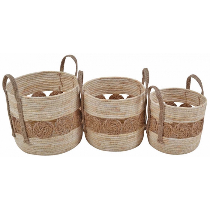 Καλάθια σετ 3 τεμαχίων ψάθινα Κύκλοι natural Ankor 824281
