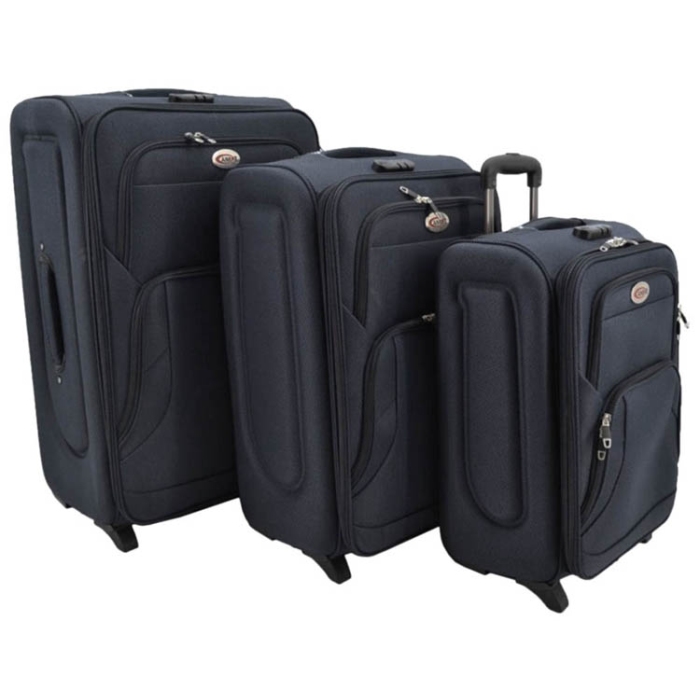 Σετ 3 βαλίτσες ταξιδίου τρόλεϋ με δύο ρόδες & εσωτερική λάμα στη λαβή για μεγαλύτερη αντοχή σε μπλε χρώμα Πτυσσόμενη χειρολαβή Διπλό φερμουάρ για μεγαλύτερη χωρητικότητα Ροδάκια για εύκολη μεταφορά Δυνατότητα κλειδώματος με συνδυασμό Διαστάσεις σάκου L: 46x32x70εκ. Χωρητικότητα: 85Lt έως 25kg Διαστάσεις σακου M: 42x28x60εκ. Χωρητικότητα: 60Lt έως 20kg Διαστάσεις σάκου S (κατάλληλος για χειραποσκευή σε εταιρείες χαμηλού κόστους): 37x24x50εκ. Χωρητικότητα: 43Lt έως 15kg ..