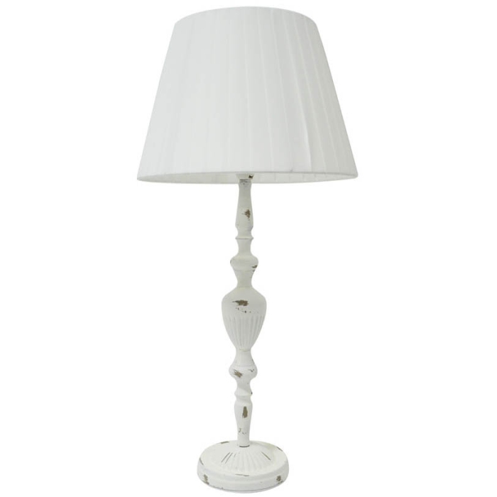Λάμπα επιτραπέζια μεταλλική Ankor Με βάση σε αντικέ μπεζ χρώμα και υφασμάτινο πλισέ καπέλο σε λευκό χρώμα Διακόπτης on/off Διαστάσεις: 28x56εκ. Δέχεται λαμπτήρα Led ή οικονομίας Ε14 εώς 40W max ..