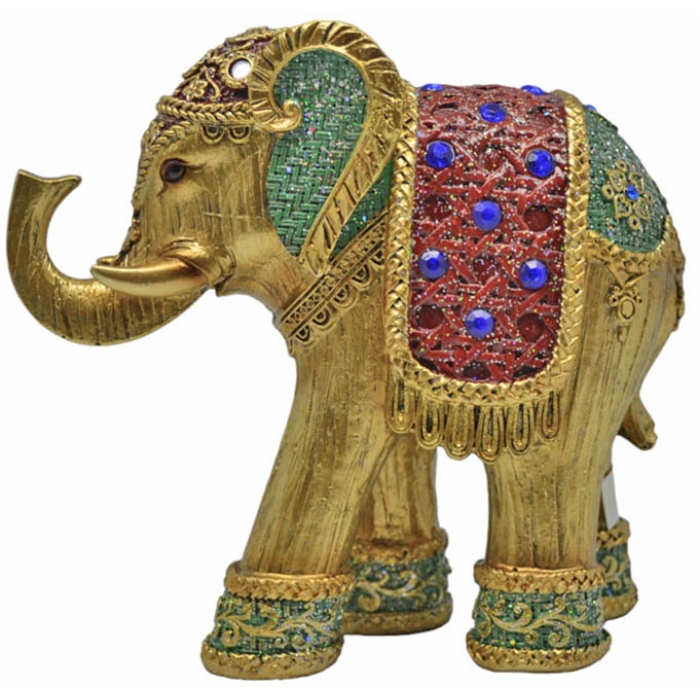 Φιγούρα διακοσμητική Ankor Με σχέδιο ελέφαντα Σε χρυσό χρώμα Με κόκκινες και πράσινες λεπτομέρειες Με έθνικ σχέδιο Υλικό: πολυεστέρας Διαστάσεις: 13x5.5x12εκ. ..