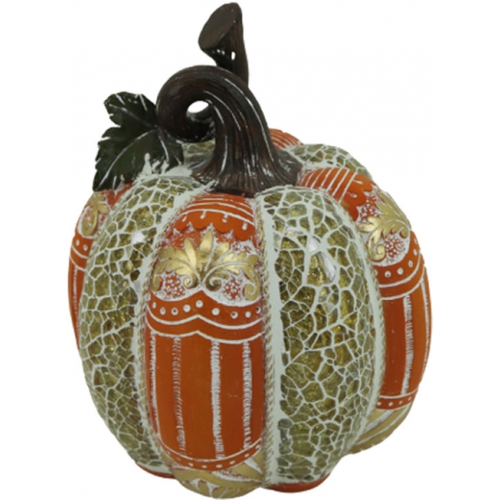 Κολοκύθα διακοσμητική πολυεστερική πορτοκαλί-χρυσό 15x18.5εκ Karvounis 21891C2
