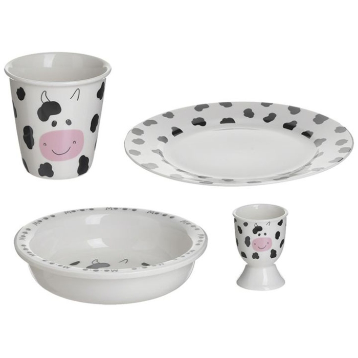 Σετ πρωινού παιδικό πορσελάνης 4 τεμαχίων Αγελαδίτσα λευκό-μαύρο Click 6-60-112-0014