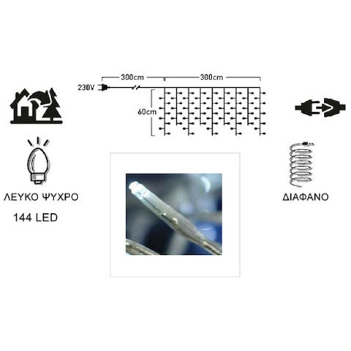144 λαμπάκια Led τύπου βροχή επεκτεινόμενα ψυχρό φως 6m TnS XLALED144ICC/31V