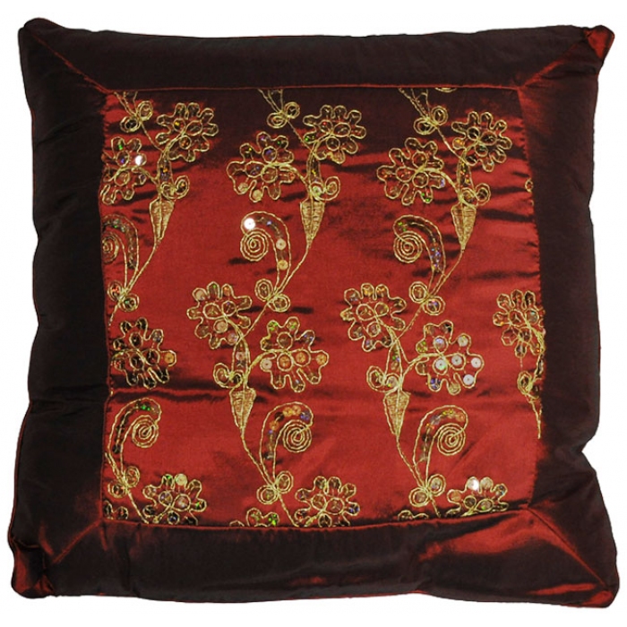 Μαξιλάρι υφασμάτινο Pol Σε μωβ χρώμα Σχέδιο με λουλούδια Με λεπτομέρειες από φούντες Θήκη με φερμουάρ Διαστάσεις: 40x8x40εκ. ..