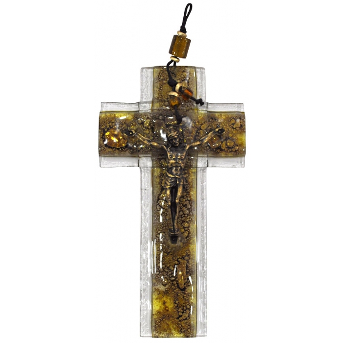 Σταυρός γυάλινος-μεταλλικός κίτρινο-χρυσό 11x2.5x20εκ Φυσαλίς ΣΤ/ΒΦ