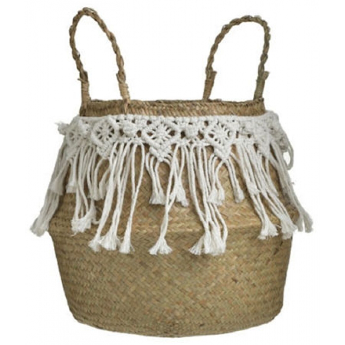 Καλάθι ψάθινο αναδιπλούμενο natural-εκρού 35x30εκ Inart 3-70-283-0016
