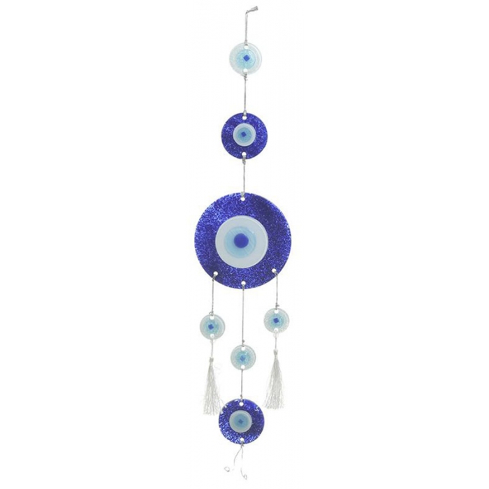 Μάτι κρεμαστό γυάλινο Inart Σε λευκό/μπλε χρώμα Με λεπτομέρεια από φουντίτσες Διαστάσεις: 16x2x70εκ. ..
