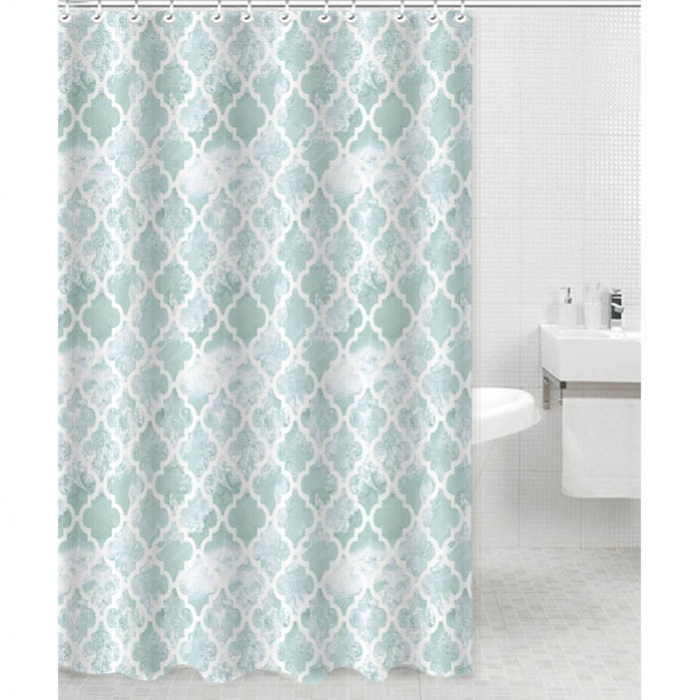 Κουρτίνα μπάνιου πολυεστερική λευκό-πετρόλ 180x180εκ Ankor 831111