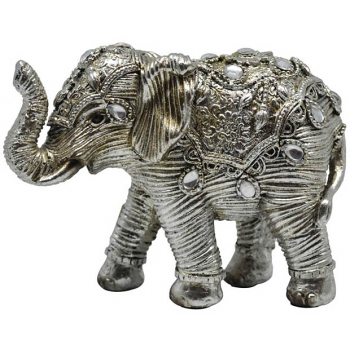 Φιγούρα διακοσμητική Ankor Με σχέδιο ελέφαντα Σε ασημί χρώμα Με έθνικ σχέδιο Υλικό: πολυεστέρας Διαστάσεις: 15x6x11.5εκ. ..