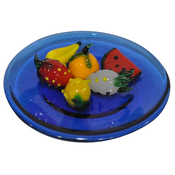 Πιατάκι διακοσμητικό γυάλινο Pol Χειροποίητο Σε μπλε χρώμα Διακόσμηση με φρούτα Διαστάσεις: 10x4εκ...