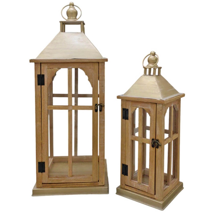 Φανάρια διακοσμητικά ξύλινο-μεταλλικό σετ 2 τεμαχίων natural-χρυσό Ankor 831784