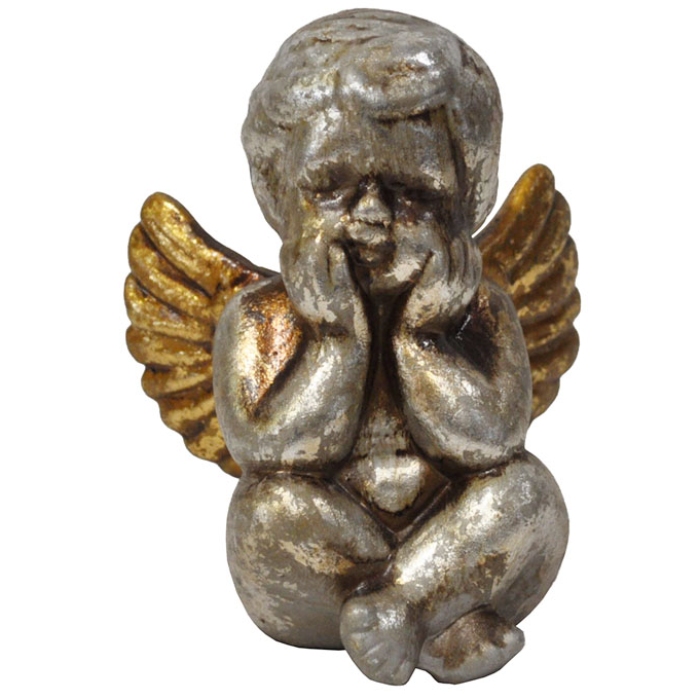 Αγγελάκι διακοσμητικό κεραμικό αντικέ ασημί-χρυσό 9.5x10x12εκ Pol 5112128