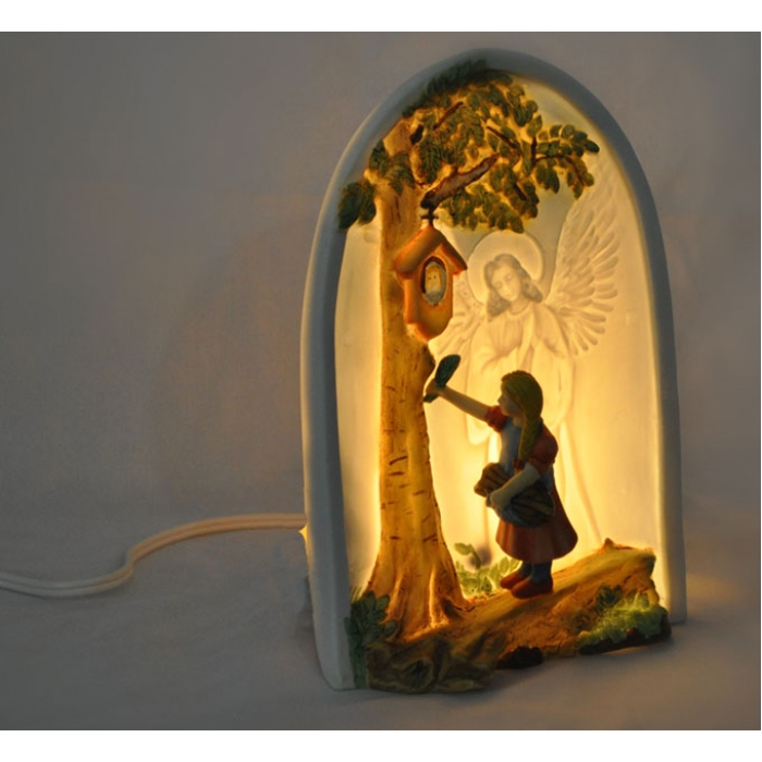 Παιδικό πορτατίφ-φωτάκι νυκτός κεραμικό Pol Σε αντικέ λευκό χρώμα Σχέδιο με κοριτσάκι σε λιβάδι Διακόπτης on/off Διαστάσεις: 11.5x7x17.5εκ. Περιλαμβάνεται λαμπτήρας νυκτός πυρακτώσεως C7 7W ..