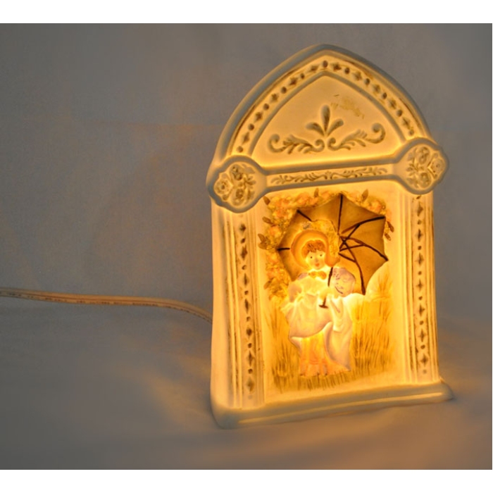 Παιδικό πορτατίφ-φωτάκι νυκτός κεραμικό Pol Σε αντικέ λευκό χρώμα Σχέδιο με κοριτσάκι σε λιβάδι Διακόπτης on/off Διαστάσεις: 11.5x7x17.5εκ. Περιλαμβάνεται λαμπτήρας νυκτός πυρακτώσεως C7 7W ..
