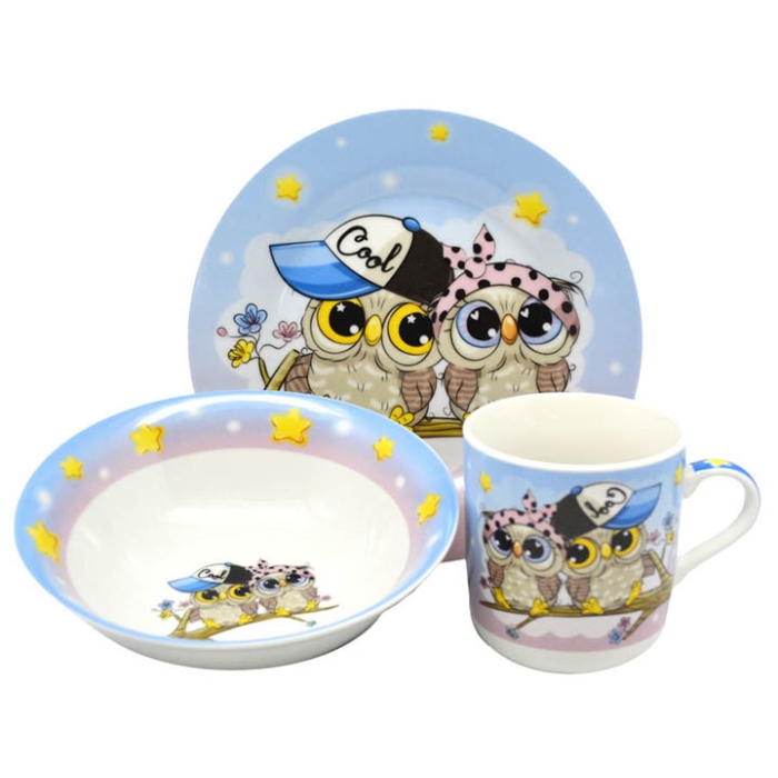 Σετ πρωινού παιδικό πορσελάνης 3 τεμαχίων Κουκουβάγιες Ankor 832033