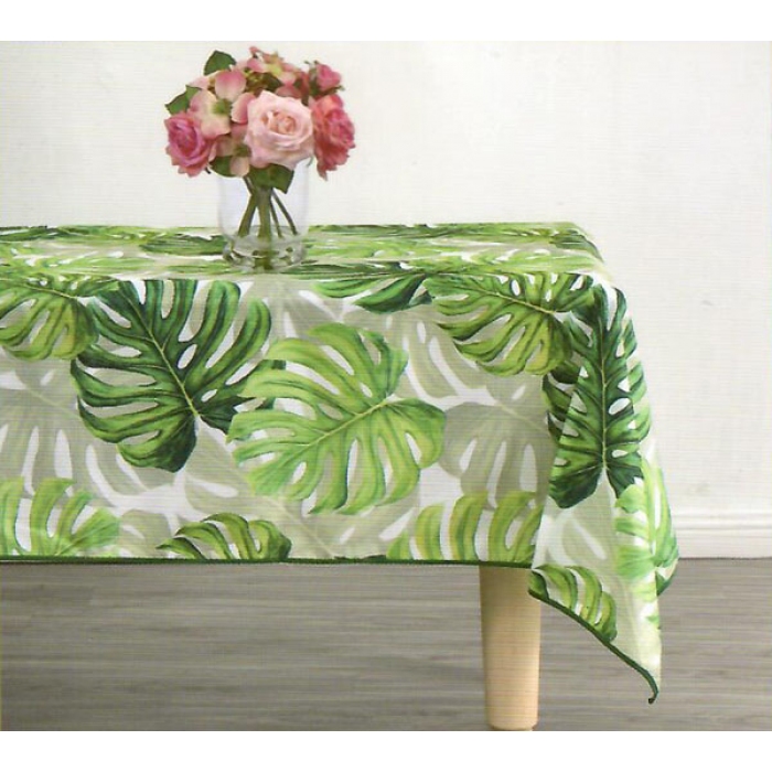 Τραπεζομάντηλο-ροτόντα υφασμάτινο Φύλλα λευκό-πράσινο 150x150εκ Chios Hellas 19051